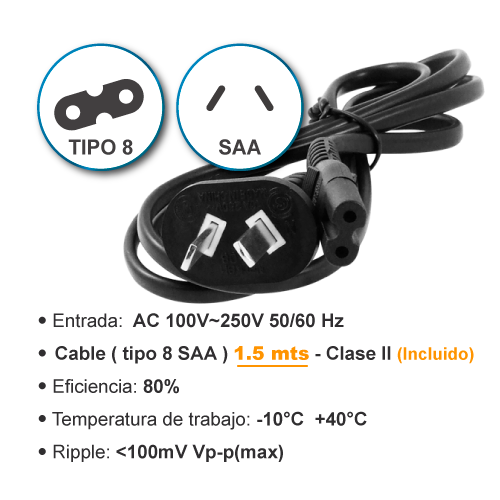 Esta fuente cuenta con protección contra cortocircuito, alta temperatura, alta tensión y alta corriente.